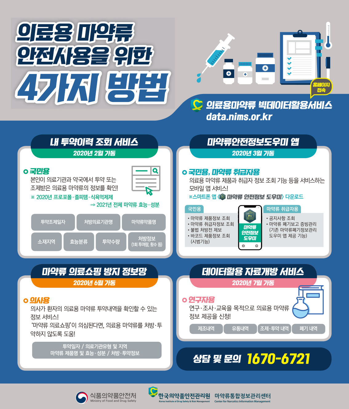'의료용 마약류 빅데이터 활용서비스(date.nims.or.kr)'를 운영하고 있습니다.