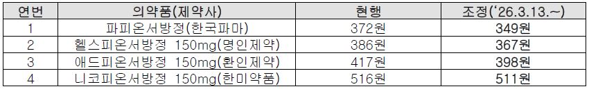 - 금연치료 의약품 중 급여등재 의약품(부프로피온)의 상한액 조정에 따른 변경