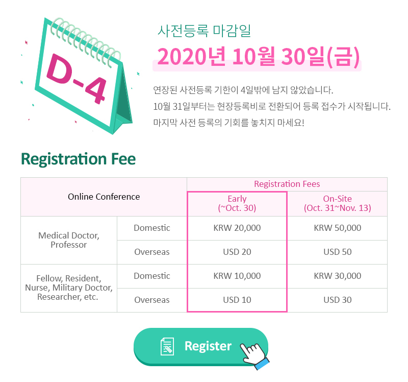 학회공지 KATRDIC 2020 Newsletter Vol. 11 D-4 사전등록 마감일 (10월 30일까지) 작성자 : 대한결핵 및 호흡기학회 조회수 : 886 게시일 : 2020-10-27 ::: KATRDIC 2020 ::: 목록