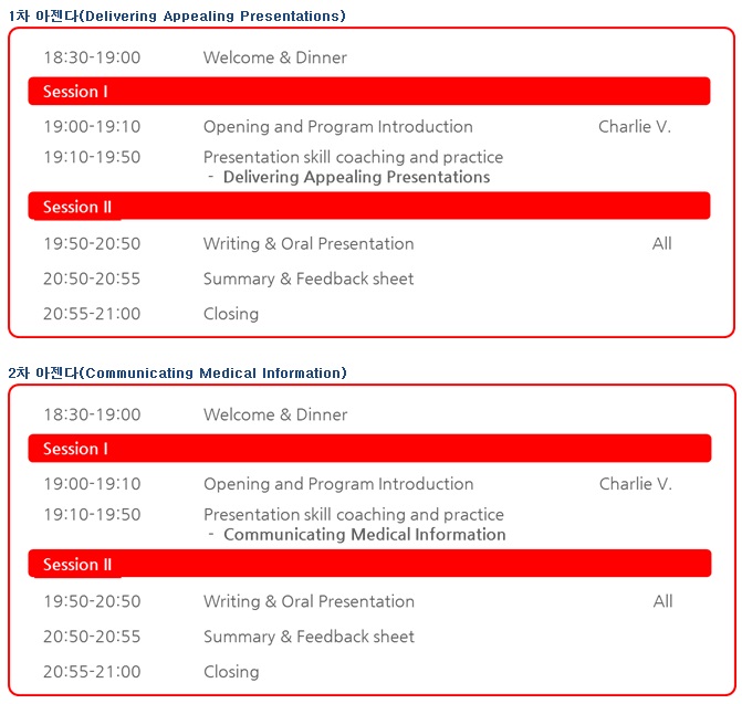 본 학회에서는 국/내외 학회, 세미나에서 English Presentation 대비를 위한 English Presentation Training