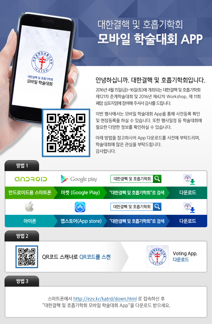 학회공지 제121차 춘계학술대회 모바일 APP 이용 안내 작성자 : 대한결핵및호흡기학회 조회수 : 1,156 게시일 : 2016-04-06 1459943925_모바일 APP 사용법.pptx (다운로드 : 293회) 1459944390_mail_160406_1.jpg (다운로드 : 226회) 목록