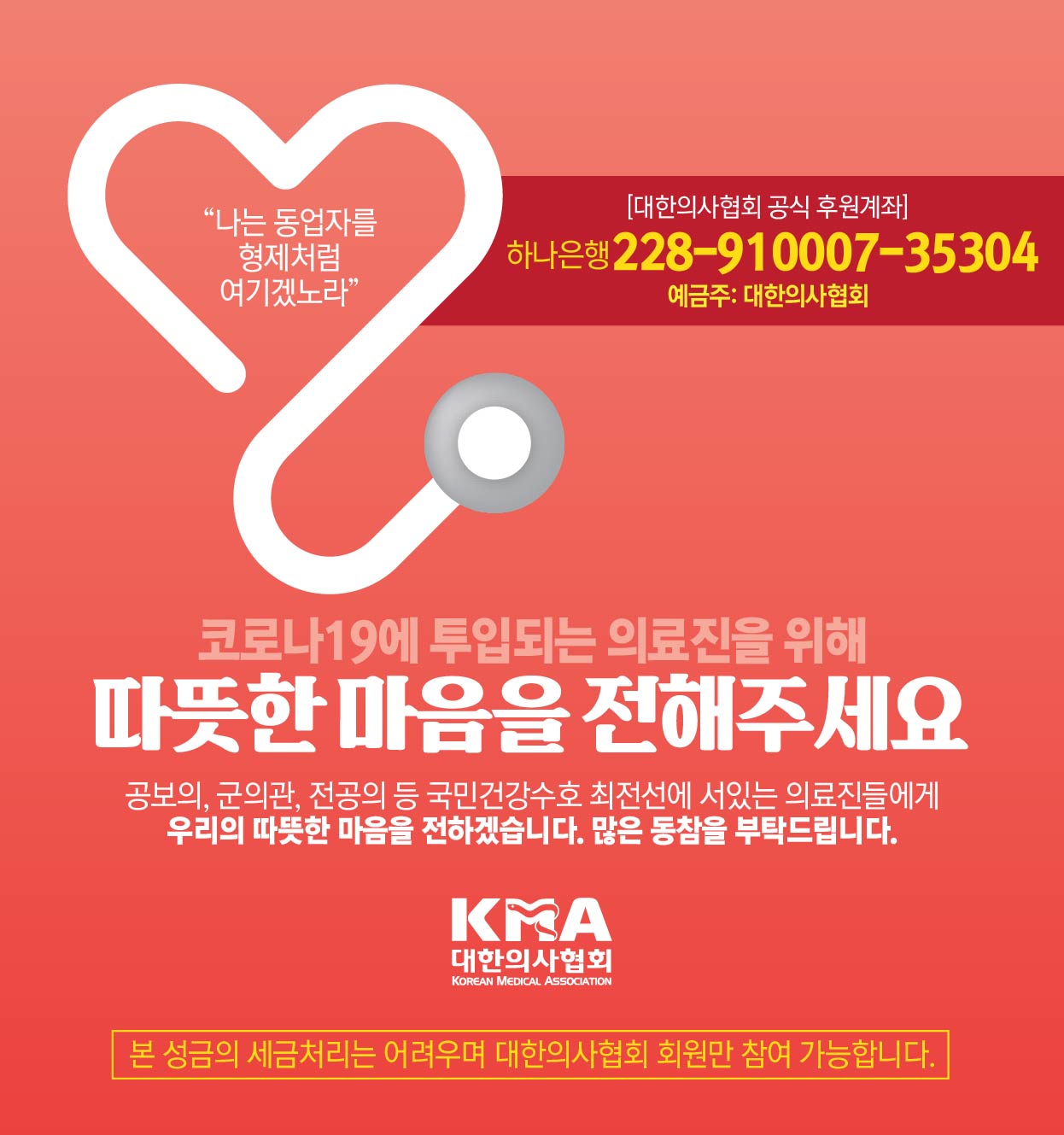 * 붙임 : 코로나바이러스감염증-19 관련 회원 돕기 성금 모금 안내문 – 1부. 끝.