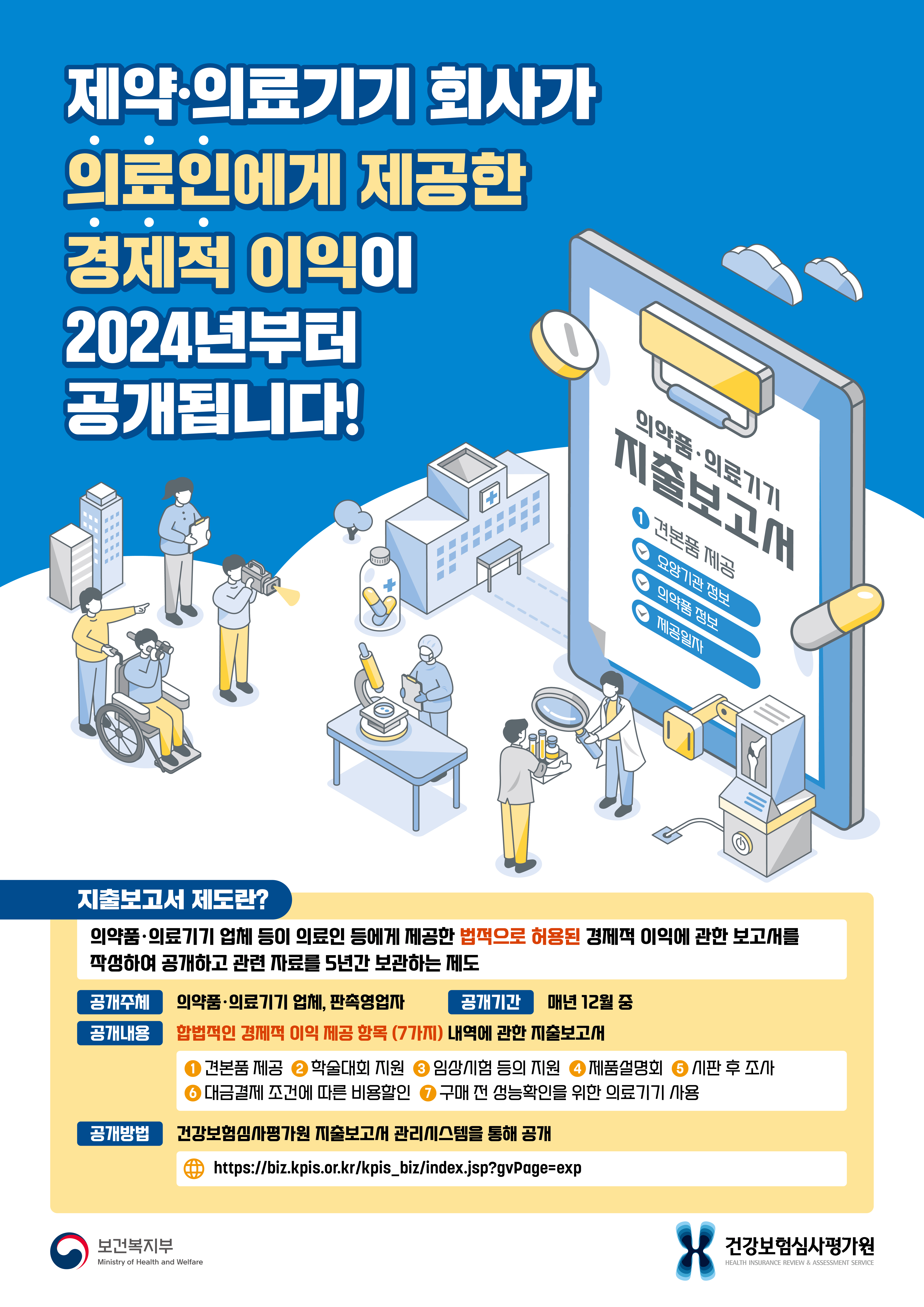 의료인등에게 제공한 법령상 허용되는 경제적 이익 등 내역에 관한 지출보고서의 공개 및 실태조사 제도를 운영하고 있습니다.