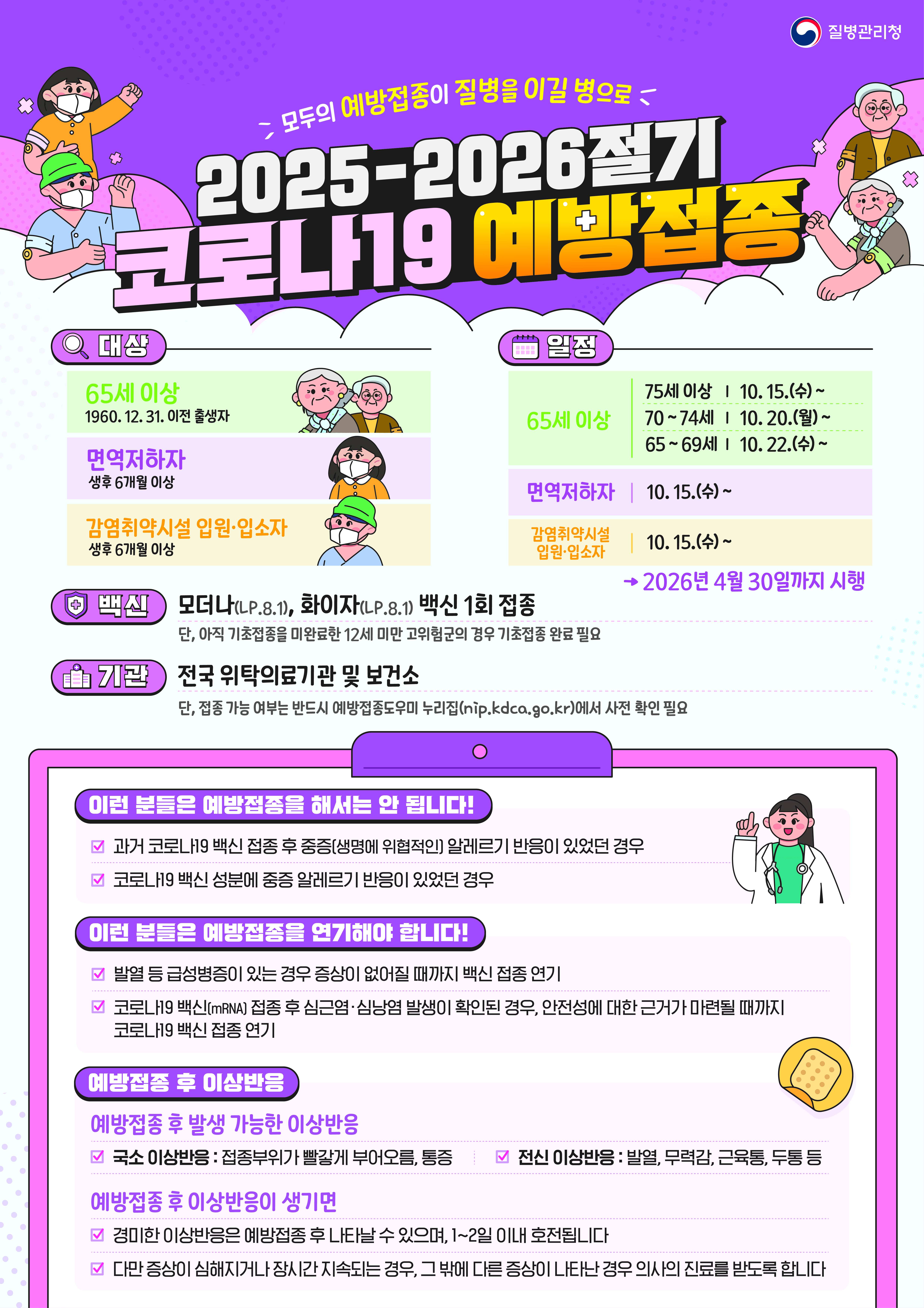 고위험군 미접종자의 감염예방 및 건강보호를 위해 빠른 시일내에 예방접종을 받으실 수 있도록 접종 독려를 대한의사협회로 요청해온 바,