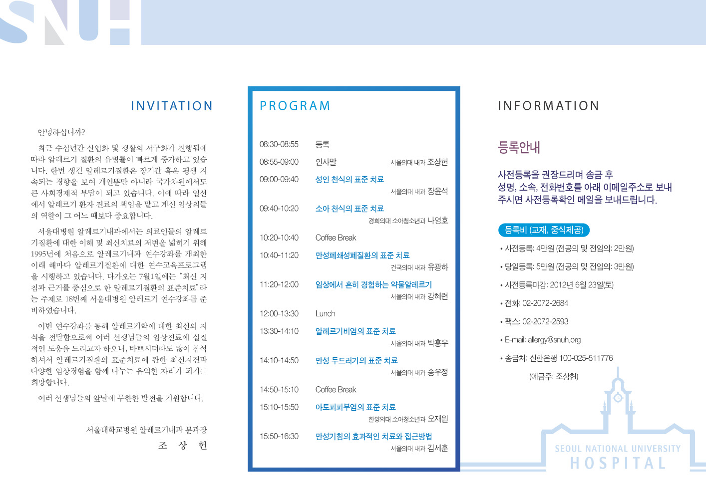 학회공지 "2012 서울대학교병원 알레르기 연수강좌" 개최 안내 작성자 : 관리자 조회수 : 1,098 게시일 : 2012-05-31 1338432207_초청장.jpg (다운로드 : 78회) 목록