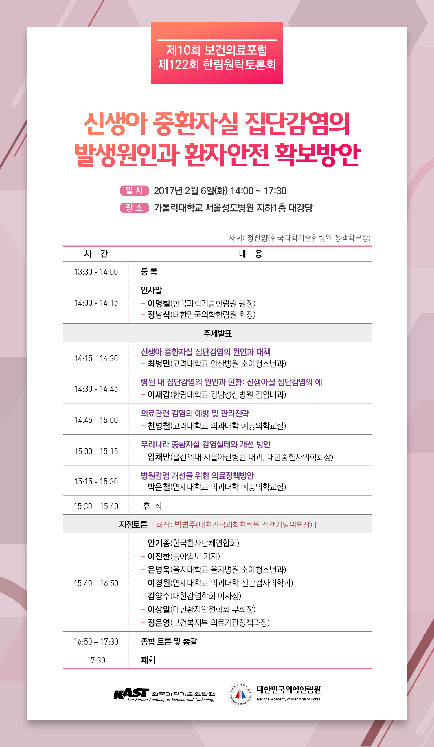 * 행사명 : 제10회 보건의료포럼ㆍ제122회 한림원원탁토론회