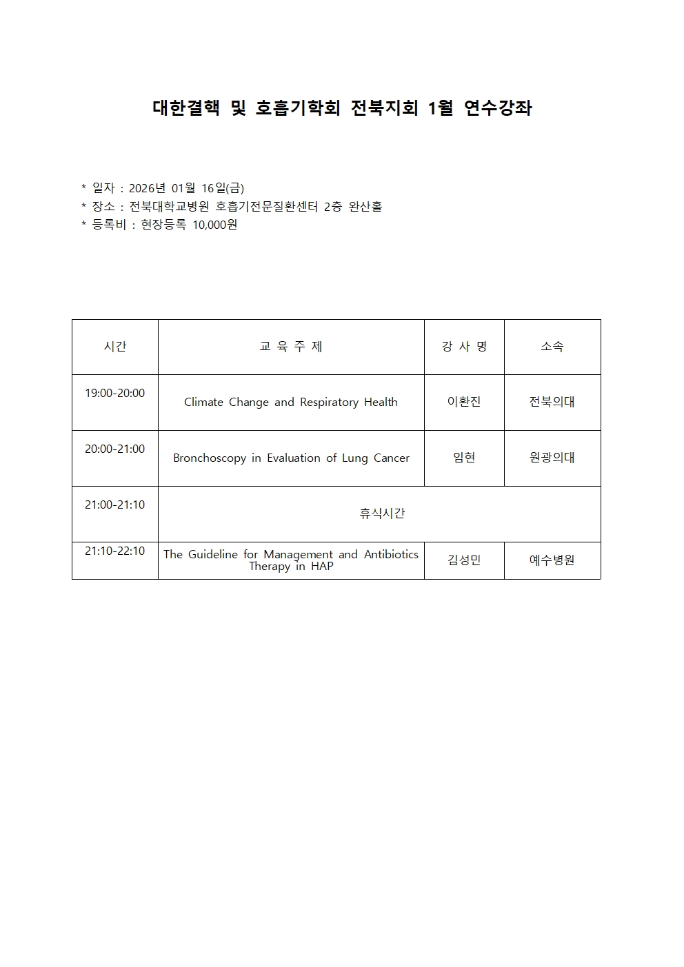 • 행사 장소 : 전북대학교병원 호흡기전문질환센터 2층 완산홀